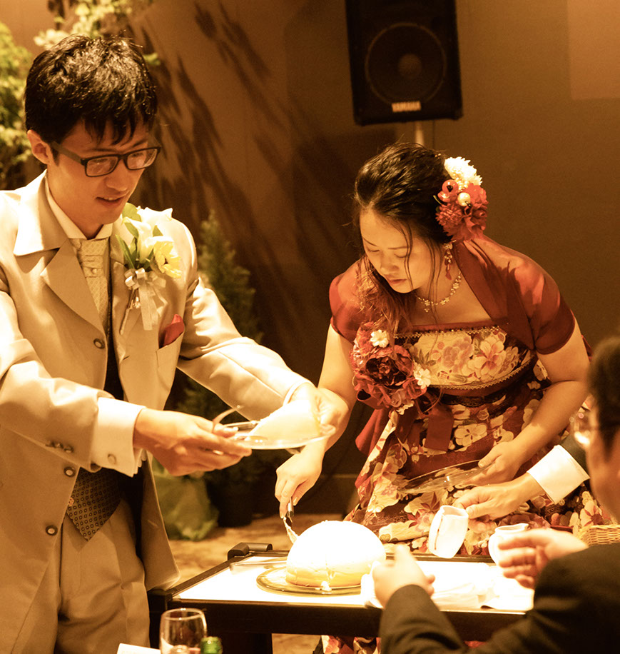 結婚式というのは二人のこれからを見守っていただく披露の場所です。そういう日本の考え方を大切にして二人のテーマは「おもてなし」そして皆さんの笑顔。