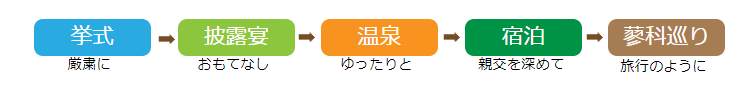 結婚という人生の最幸の通過儀礼でゲストの皆さんが、ゆっくりと時を過ごせるように、宿泊をセットに考え懇親を深めて頂く 日本的な結婚式をお勧めします。