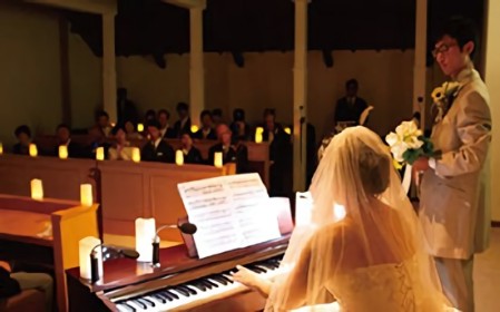 新婦は小さい頃お母様と通ったピアノ教室でよく弾いていた曲を感謝をこめて演奏。一つの演劇のように進む挙式ができあがりました。