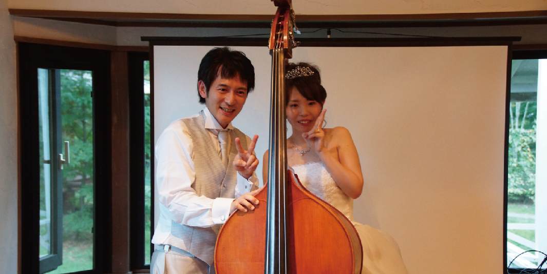 仕事の関係でお名前を伏せますが、新郎Tさんと新婦Aさん。本当に新婦のことが可愛くて大好きな新郎さん、彼女がよければと色々考えてくれていました。新婦は、あまり結婚式や人前が苦手という感じで、教会、ホテルと案内しましたが、あまりこの気乗りはしていないように見えました。アットホームで家族婚が希望のようでしたが、あまりはっきりお話をしていただけない状態でした。その中、新郎の趣味を聞き出して見た所、ジャズがお好きでウッドベースをやっているということ!